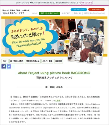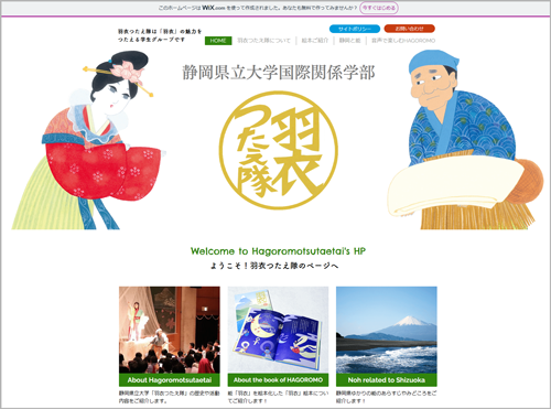 静岡県立大学「羽衣絵本プロジェクト」活動メンバー、「羽衣つたえ隊」の公式ホームページのデザインをしました。※Wix使用