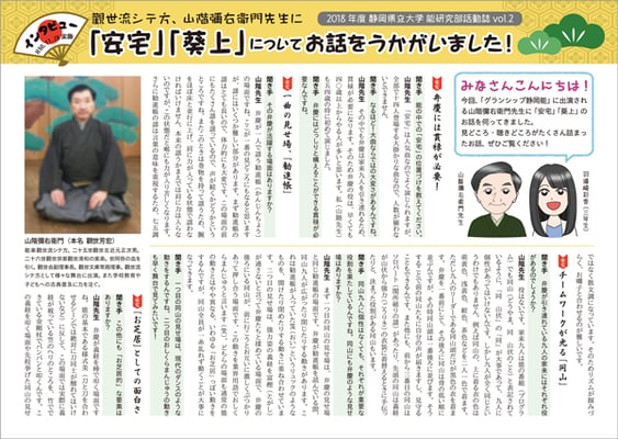 静岡県立大学能研究部のインタビュー記事の編集および紙面デザインを担当しました!学生さんがインタビューや校正、人物のイラストも担当し、能を知らない人でも興味が持てる充実の内容でした。おかげさまで楽しくデザインさせていただきました!
